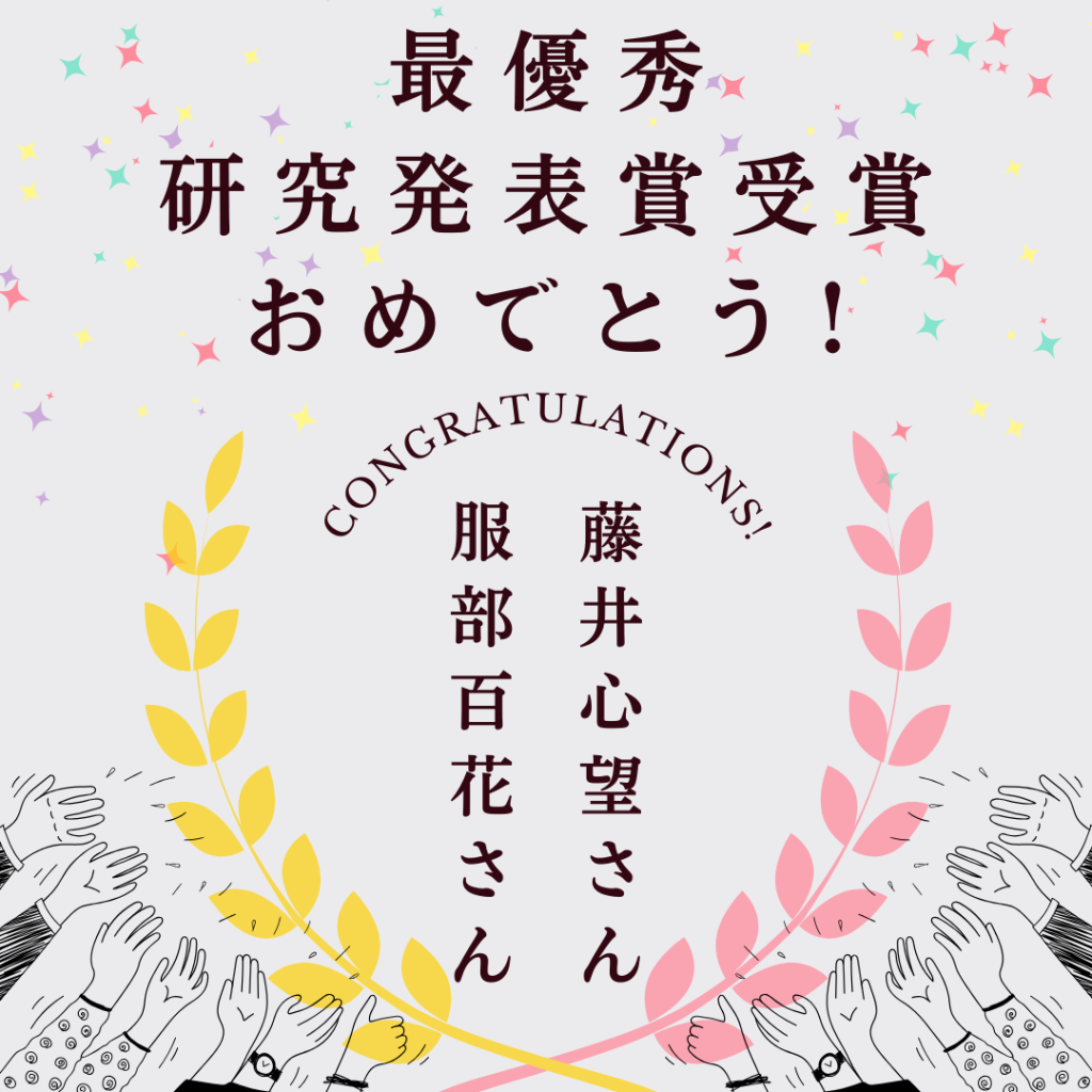 学生の研究発表が学会にて最優秀研究発表賞を受賞